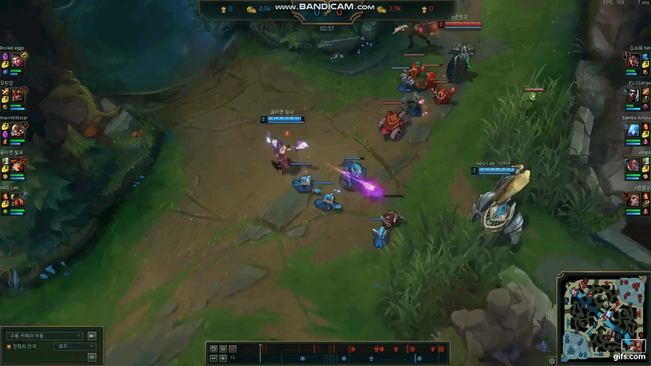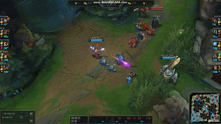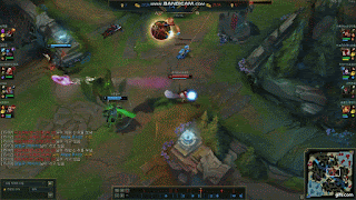 가장 중요한 것은 E가 맞기 전에 W를 끌어올 위치 정중앙에 사용하는 것입니다.(이 경우 플래쉬나 후퇴기를 사용해도 헤르메스의 신발 같은 CC시간 감소 아이템이 없는 경우엔 W 데미지를 확정적으로 맞습니다.)
