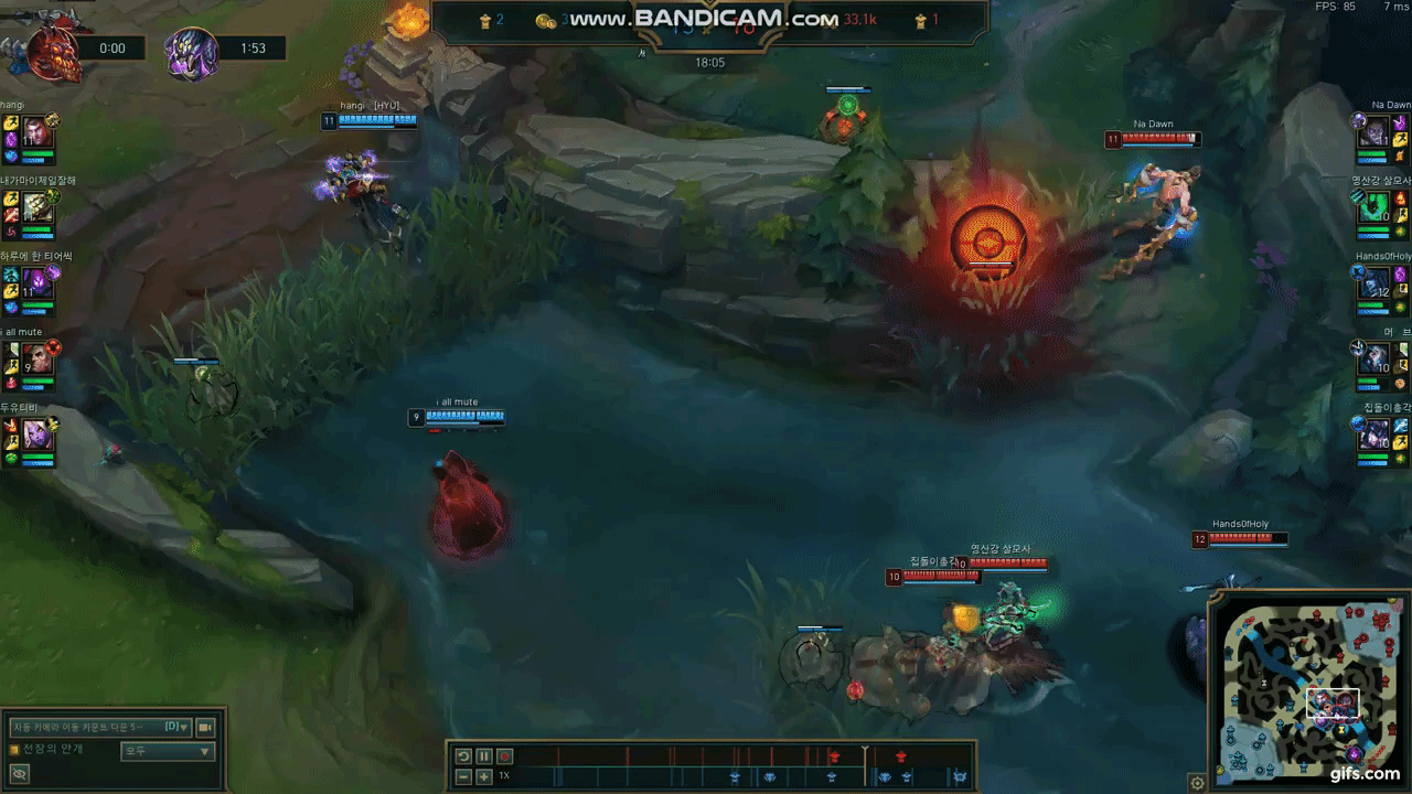 이는 봇에서 5~6초 정도만 올라가도 미드 어디든지 사거리가 닿을 정도의 거리입니다.